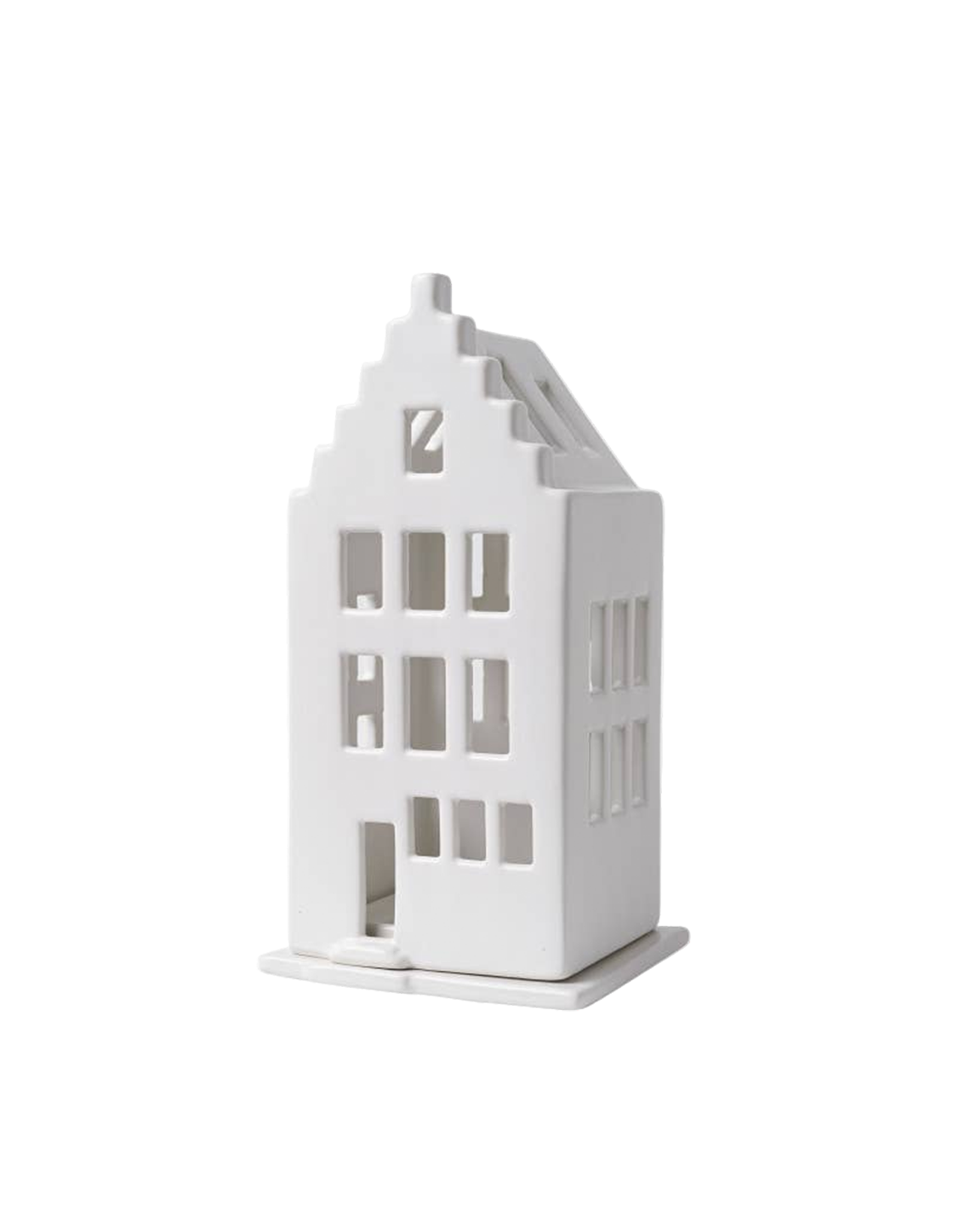 A quiet nod to historic Dutch canal houses, this stepped-gable tealight holder glows softly from within. Crafted in white porcelain and finished with a blue satin ribbon, it hangs or rests beautifully among garlands, windows, or mantle vignettes. The crisp blue-and-white palette brings classic Delft refinement to holiday decorating. Designed and handpainted in the Netherlands by Heinen Delft Blue to be cherished year after year.