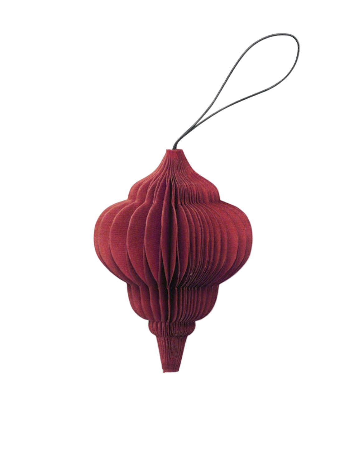 Whimsically shaped, and sustainably made, our Jewel Accordion Cotton Ornament in Ruby harkens back to a bygone era with its nostalgic, folded design.