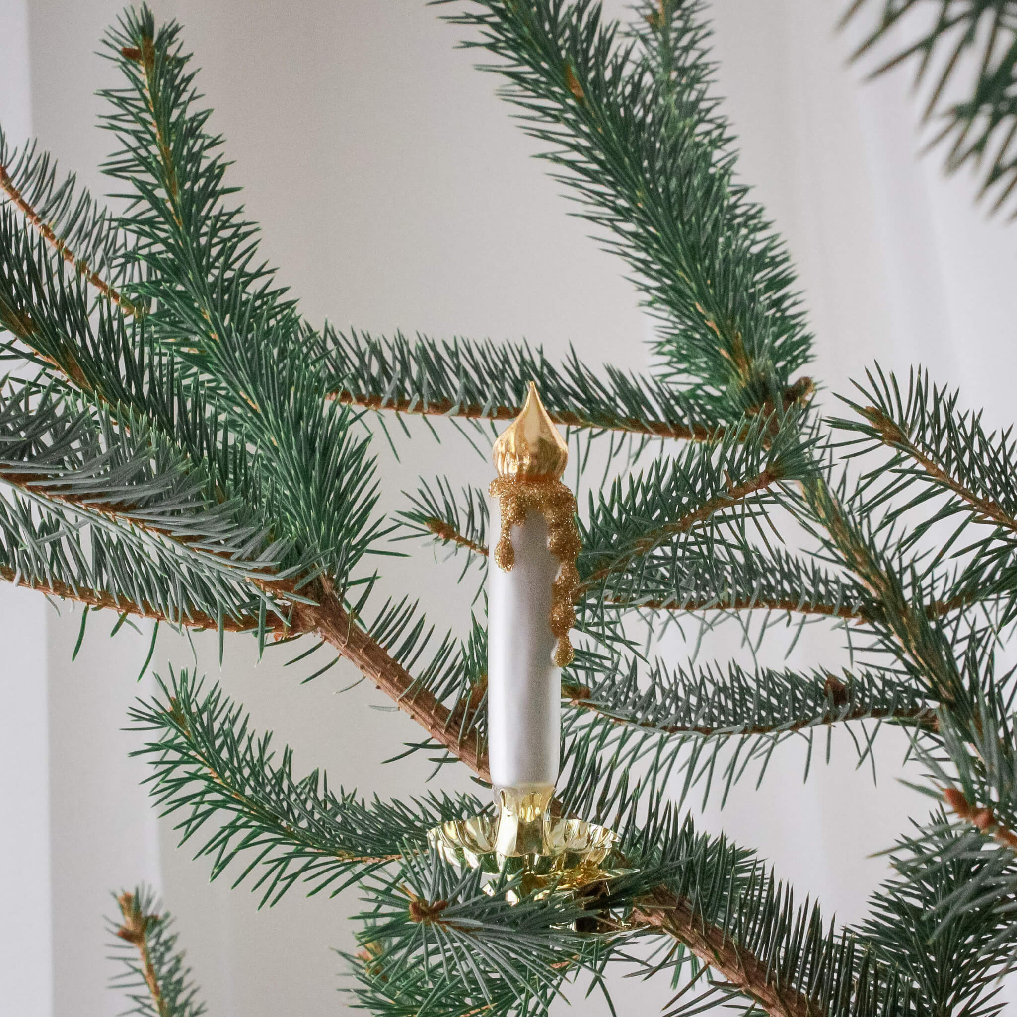 Crafted by Inge-Glas® in Lauscha, Germany, this delicate glass candle rests on a gleaming gold clip that fastens securely to a branch. Each is mouth-blown, silvered, and hand-painted, continuing a 15-generation legacy of craftsmanship. A meaningful nod to history—and a safer, sparkling alternative to the original flame-lit practice.