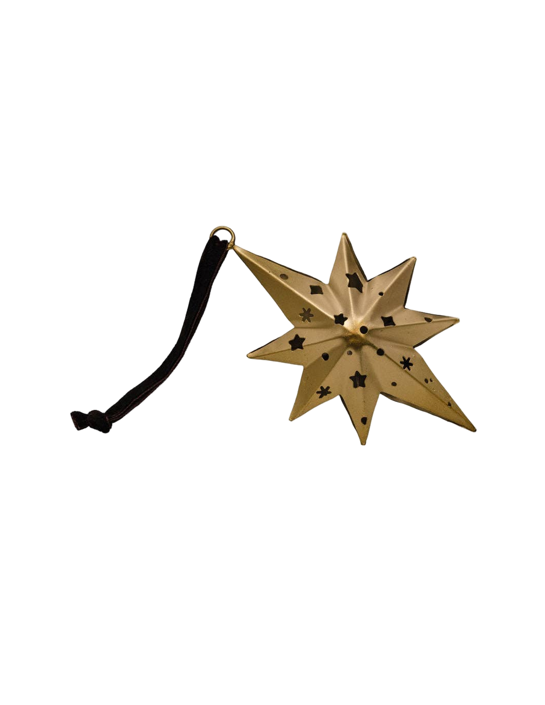 Guided by tradition and craftsmanship, the Gold North Star Ornament is handmade in India from cut iron and painted in a soft, brushed gold finish.