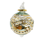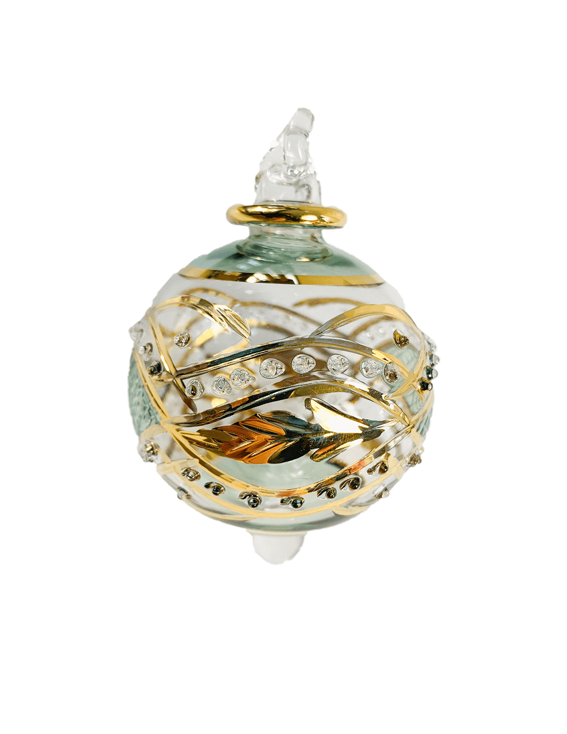 Fresh and refined, the Green Garland Ball ornament pairs soft green glass with a pattern of gold swags. Hand-blown by Egyptian artisans in Cairo and painted with care in a Fair Trade workshop, it brings a gentle note of heritage and beauty to festive décor.