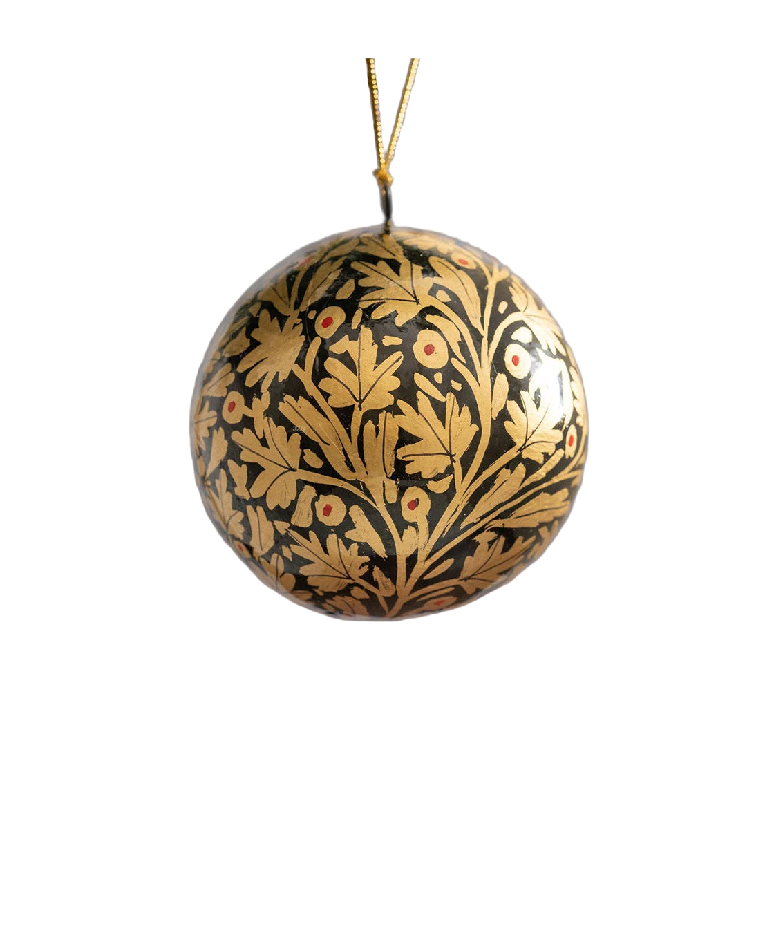 2" Black & Gold Leaf Paper Mache Hanging Bauble