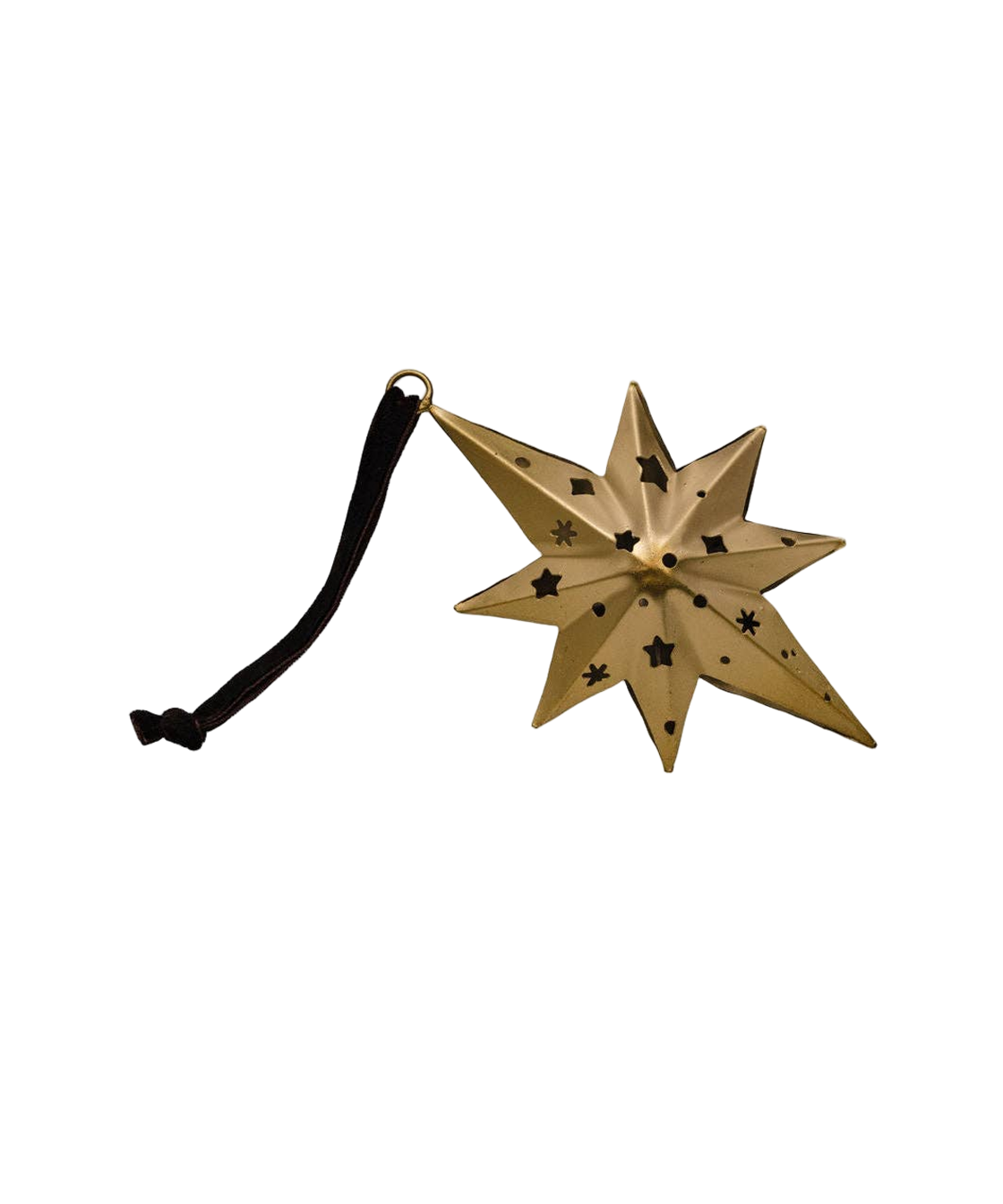 Gold North Star Ornament — Handcrafted Metal with Velvet Ribbon