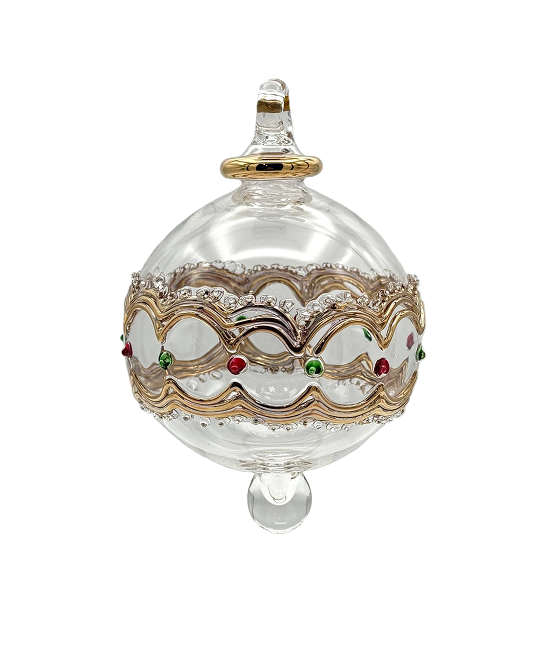 Egyptian Glass Red and Green Ball Ornament