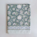 Tangier Green Cotton Block Print Tablecloth