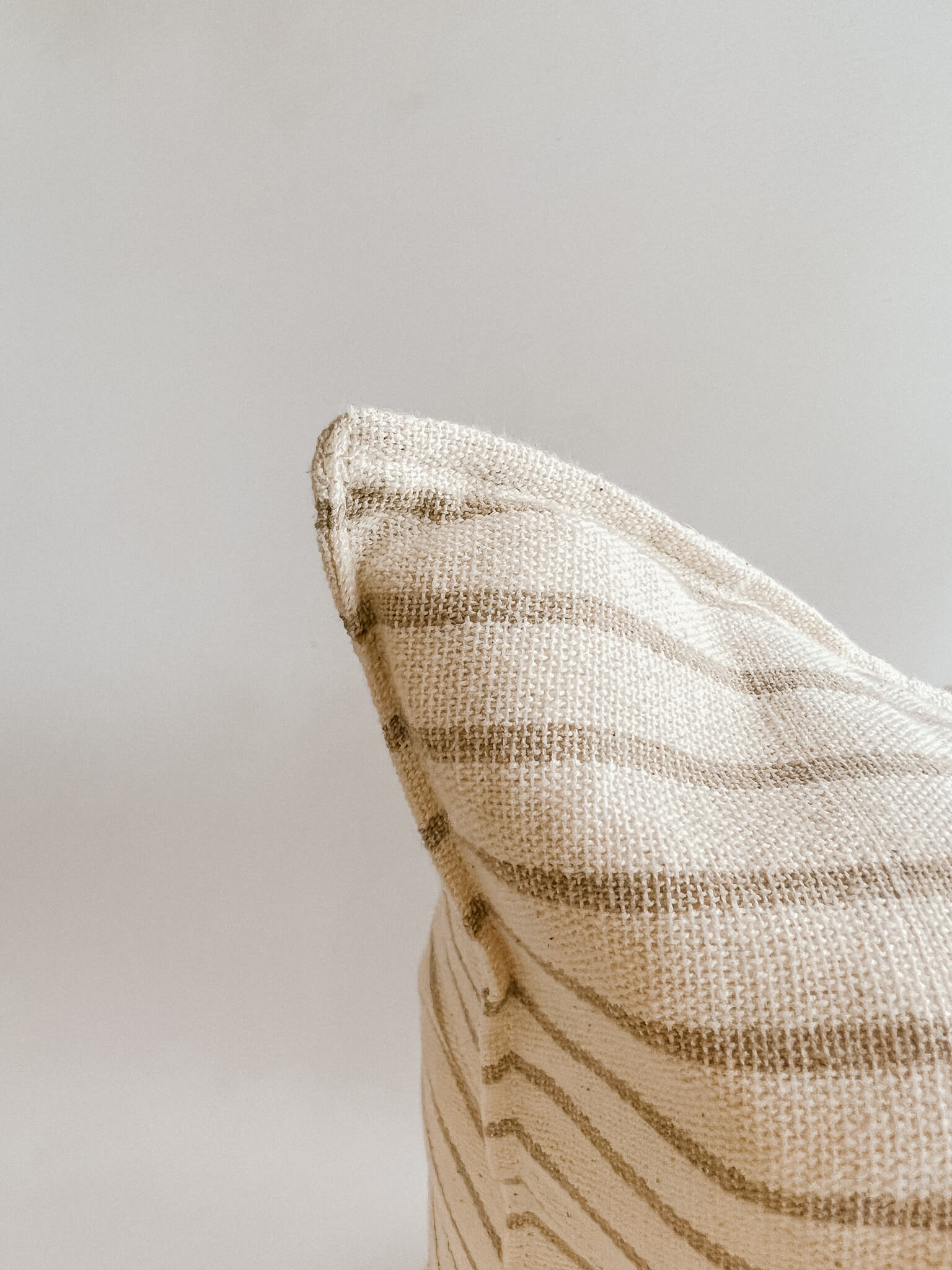 Beautifully finished with a hidden envelope closure, the Greige Stripe cover is part of our small-batch artisan pillow collection.