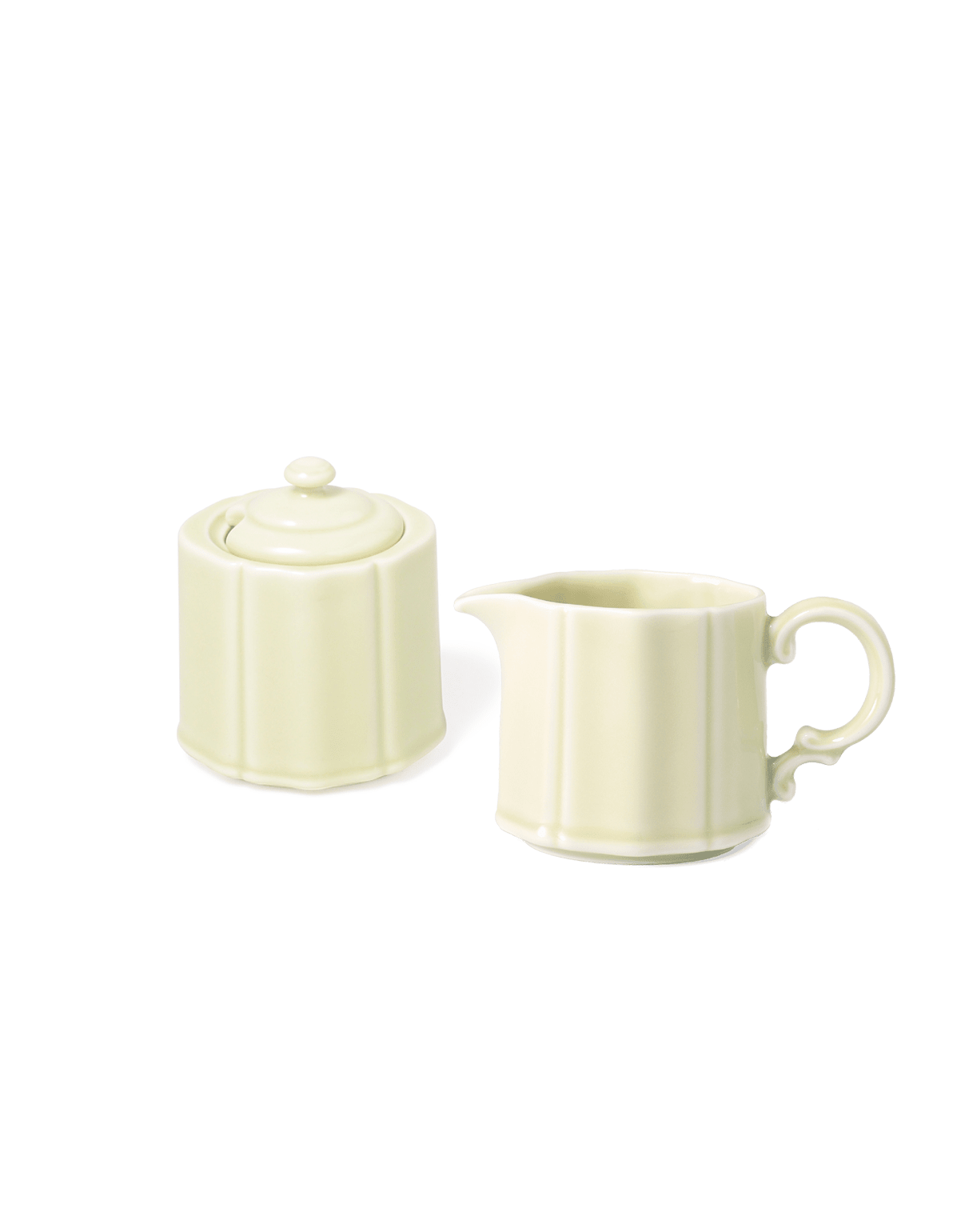 Inspired by the charm of England’s elegant afternoon teas, this cream and sugar set pairs a timeless silhouette with sculpted details and the refined craftsmanship of Japanese porcelain. Its gentle curves, glossy green glaze, and dainty scale bring a touch of old-world elegance to any tea ritual.