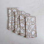 Brown Floral Hand Block Print Cotton Napkin Set 4