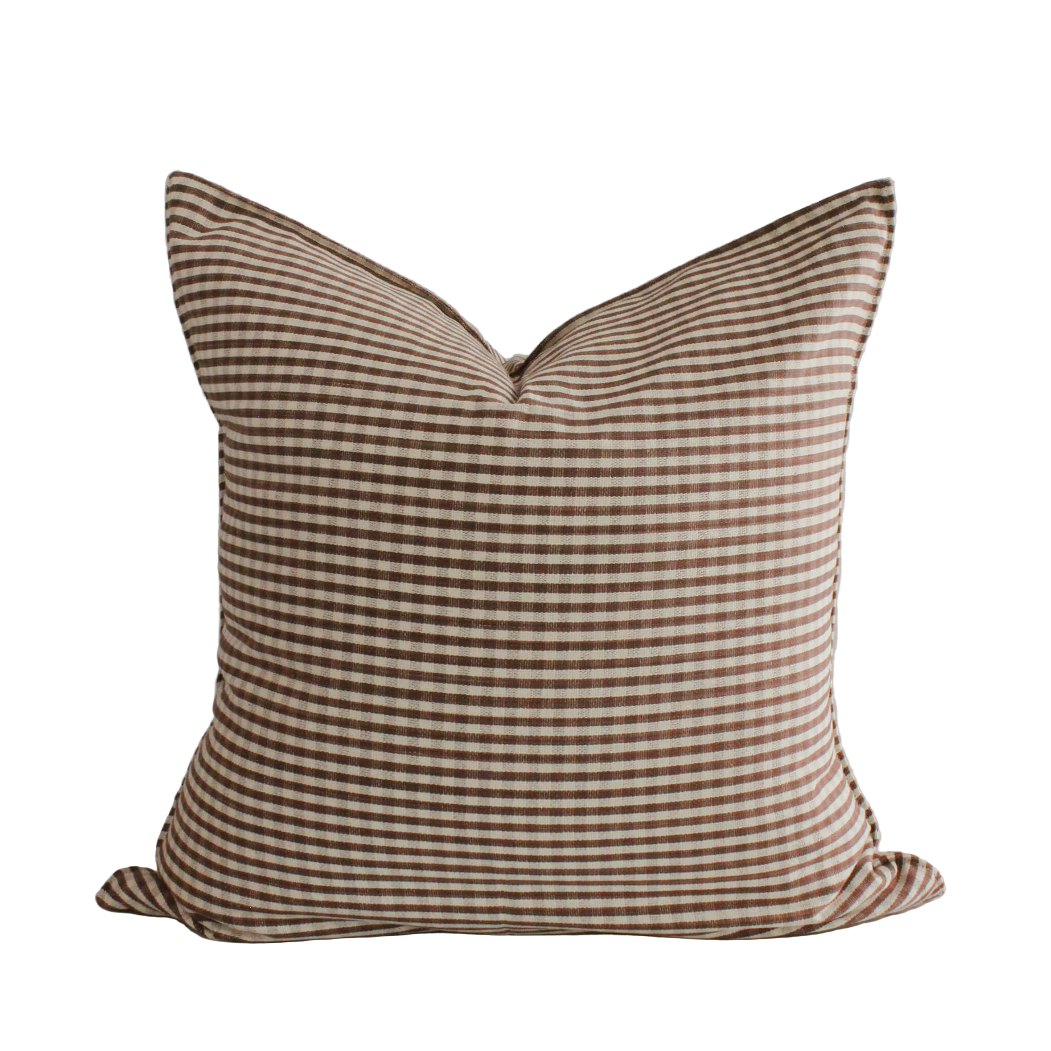20" Chocolate Petite Gingham Handwoven Cotton Cushion