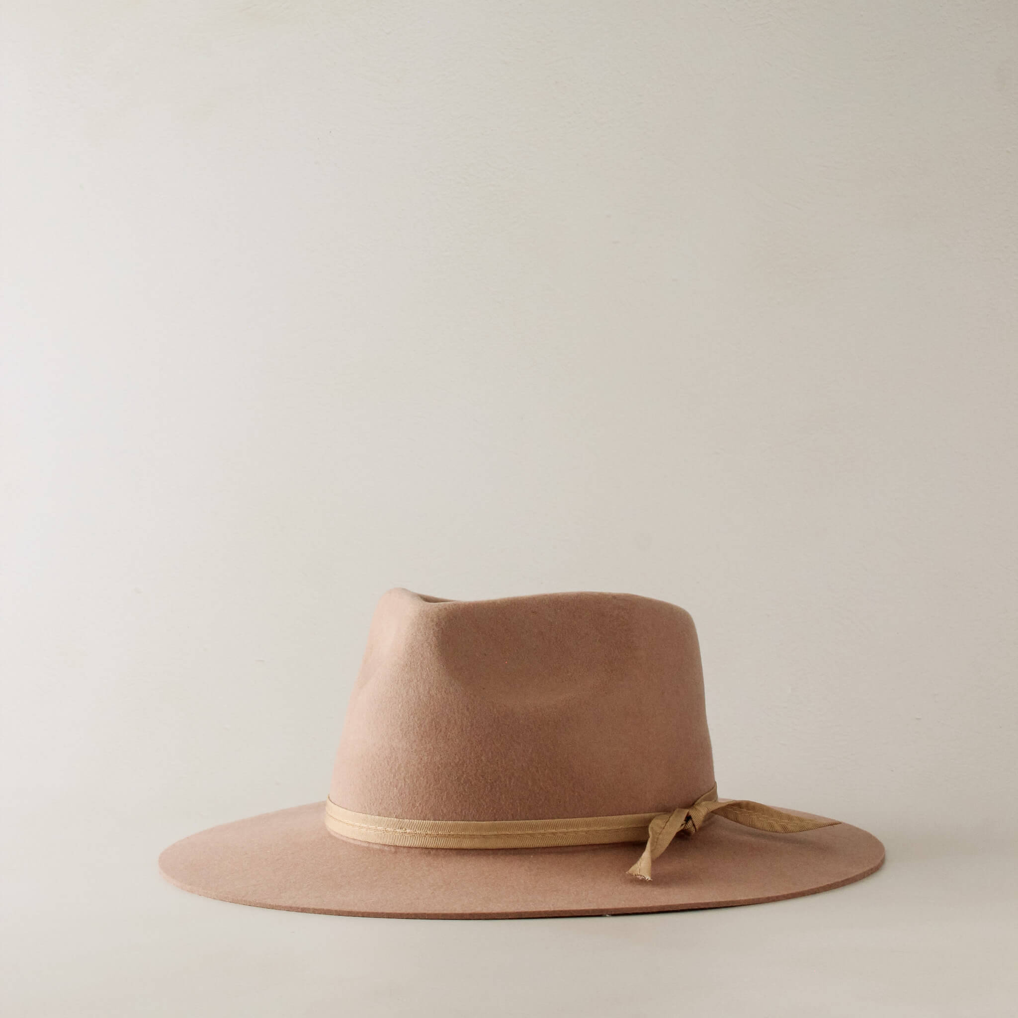 Made of tan wool & trimmed with a coordinating double-stitched gross grain ribbon; this vintage classic fedora silhouette is a refreshed take on a wardrobe staple.