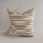 Our Chocolate Stripe pillow cover is a decorative throw cushion cover that features a variegated stripe pattern in handwoven organic cotton.
