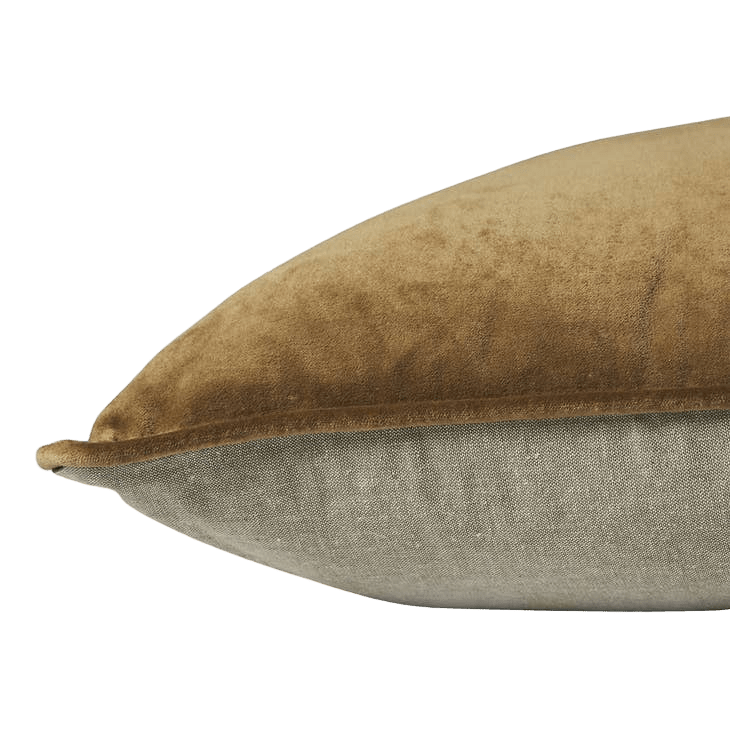 Finished in soft velvet in caramel with matching piping and a natural chambray reverse. Cover only DIMENSIONS: 50 x 50cm MATERIAL: 100% Cotton Velvet / Natural Chambray COLOUR: Caramel