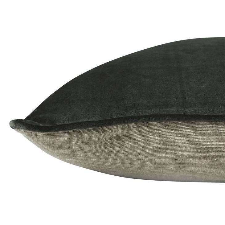 Finished in soft velvet in evergreen with matching piping and a natural chambray reverse. Cover only DIMENSIONS: 50 x 50cm MATERIAL: 100% Cotton Velvet / Natural Chambray COLOUR: Evergreen