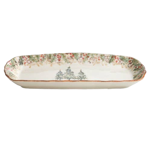 An elegant, hand-painted tray for biscotti, antipasti, or sweet confections. Each piece is painted in Tuscany with winter greens and berries, reflecting the warmth of shared moments around the holiday table.