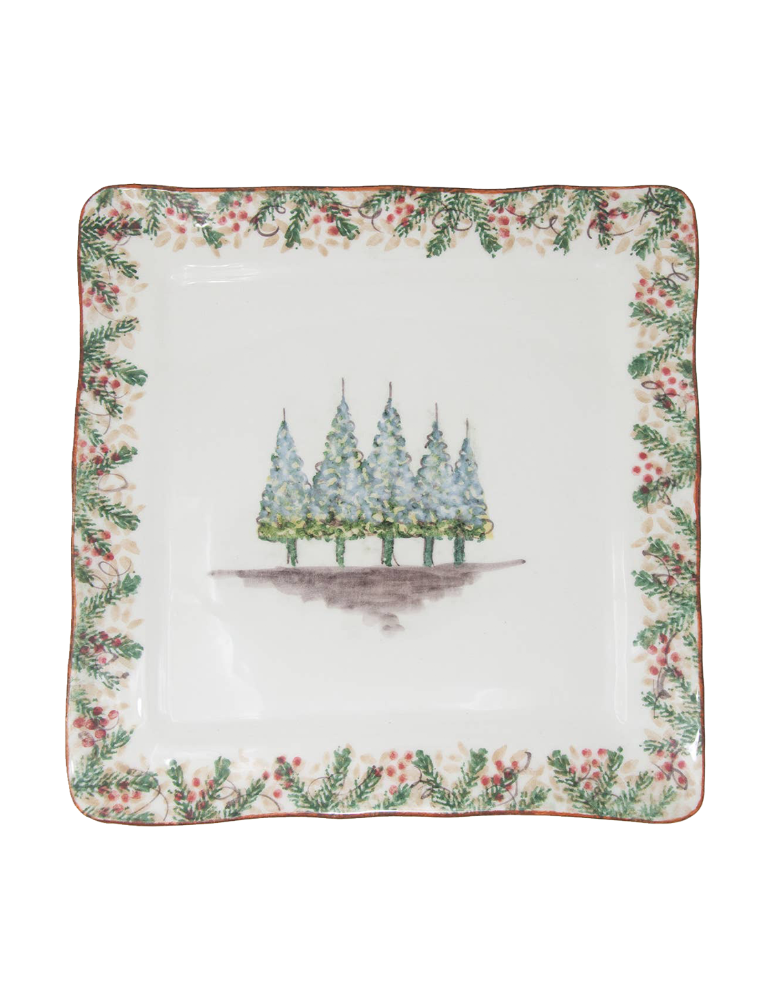A gathering of fir trees rests at the heart of this hand-painted platter, framed by garlands of pine and winter berries. Each brushstroke celebrates the art of Tuscan pottery, timeless and full of grace. A beautiful piece for serving food or for display throughout the season.