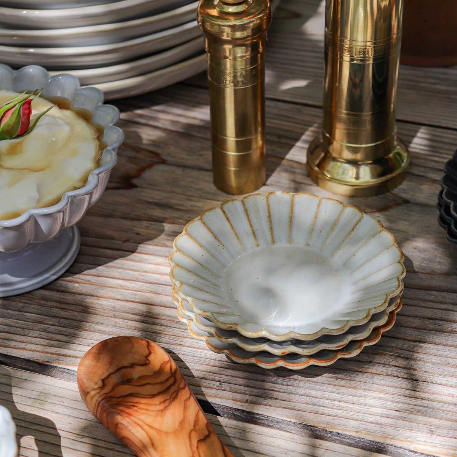 Named after the French Barbarie duck, the petal-like edges of this petite ceramic plate are inspired by the ruffles of its feathers. Flip it over and you’ll find a stamped seal paying homage to the namesake bird—a whimsical detail that adds to its delightful charm.