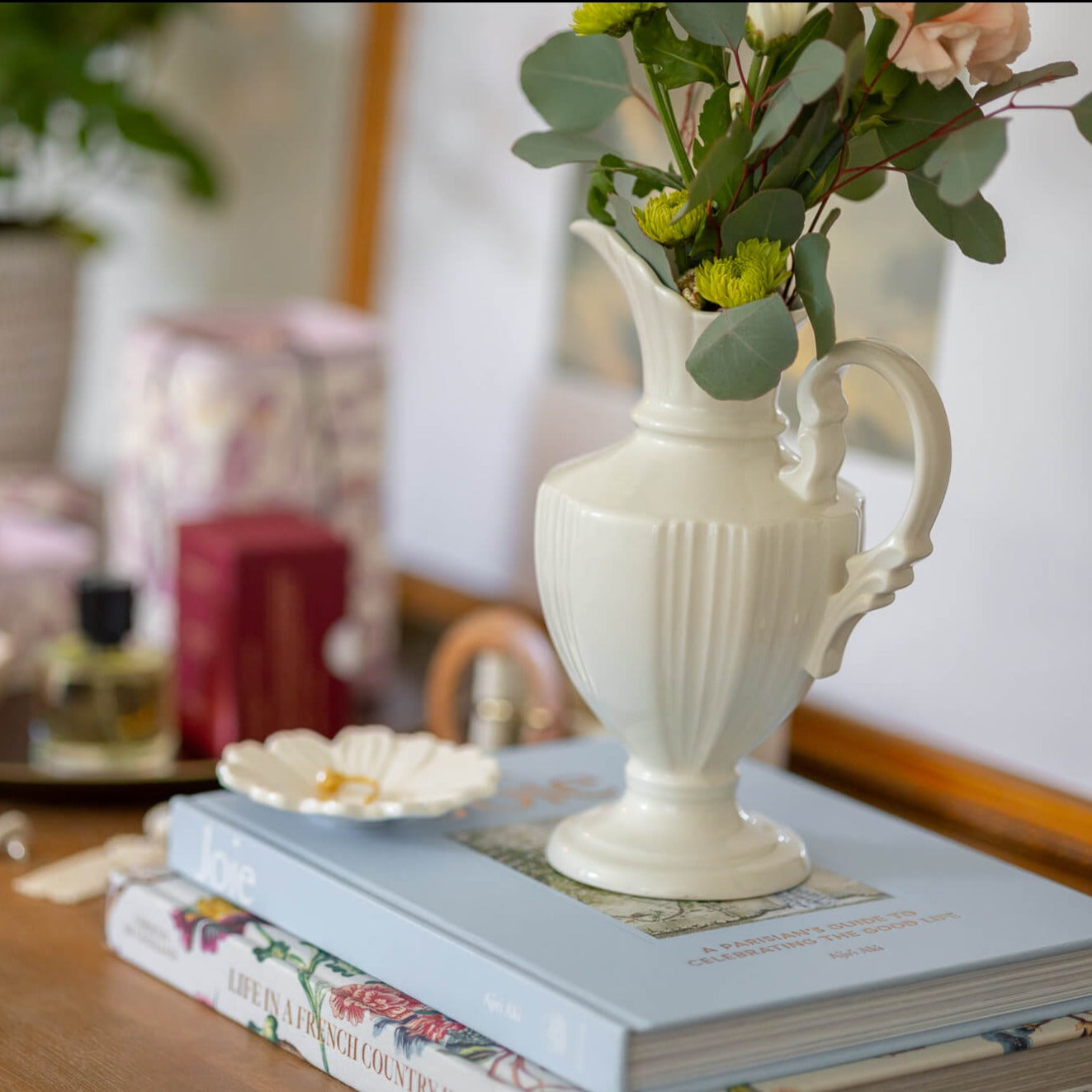 Is there anything more versatile than a beautiful pitcher? Meaning "graceful" in French, the Gracieux Fluted Porcelain Pitcher gets its name from its demure size and delicate, hand-carved detailing.