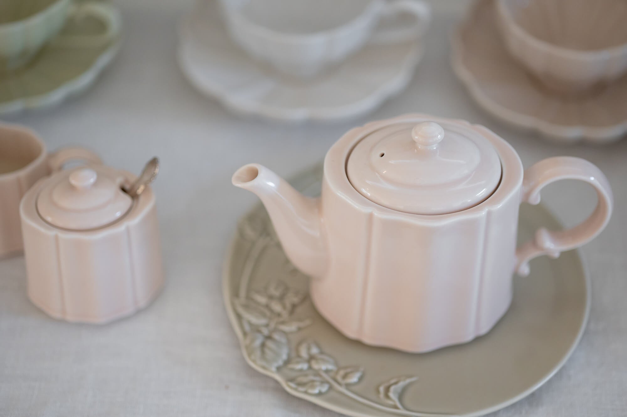 Created in three beautiful glazes of Pale Pink, Soft Green and Crisp White, the Bouquet is a timeless tea set that makes an everyday experience extra special.