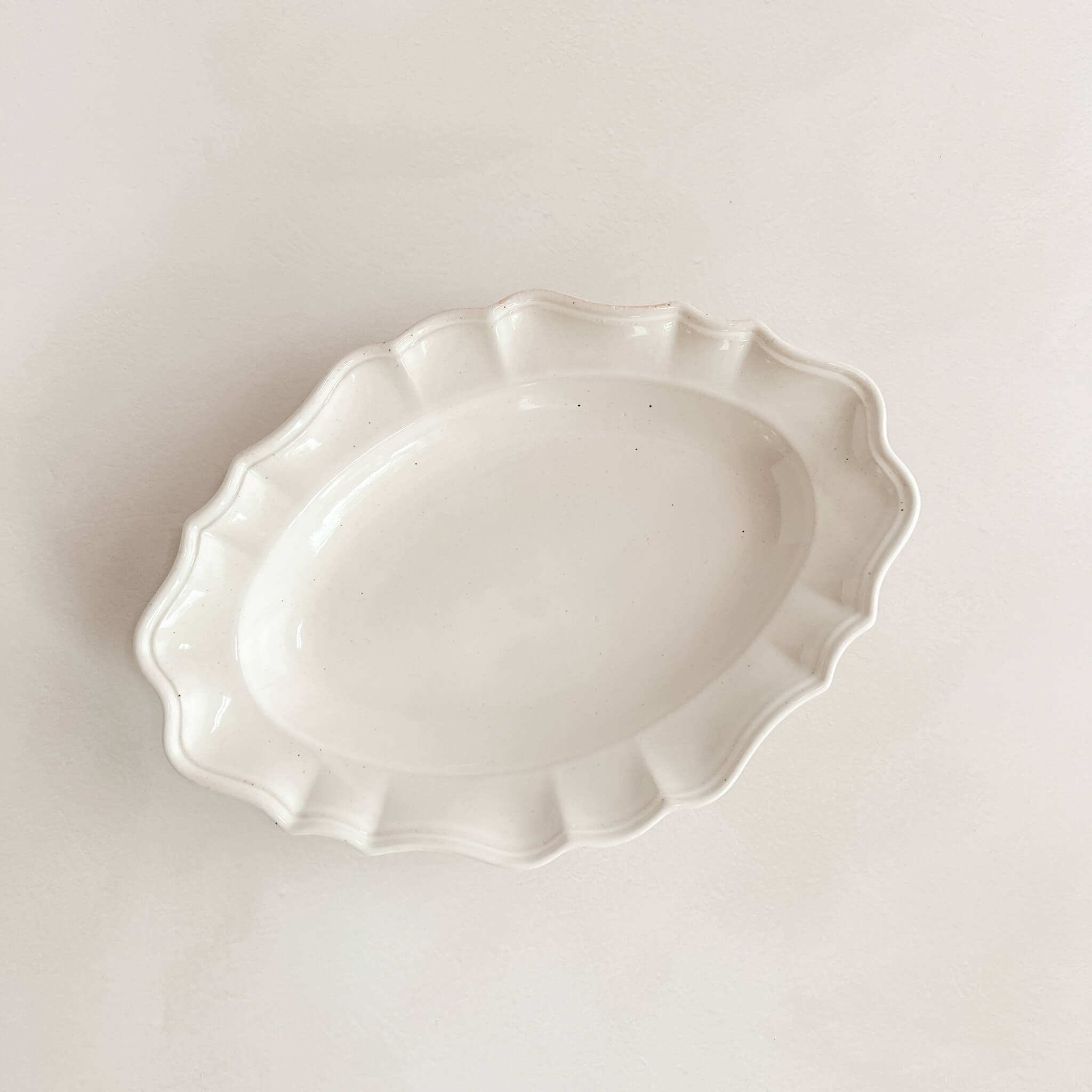 Manoir Cream Scalloped Japanese Stoneware Platter