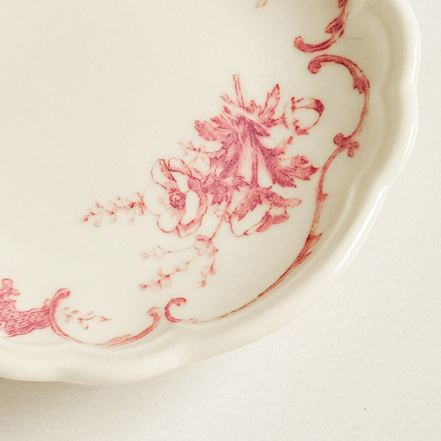 Inspired by the fleeting beauty of flowers in bloom, the Rose Petite Plate captures the charm of antique tableware. Each petite dish is adorned with delicately transferred botanical illustrations—reminiscent of vintage finds and heirloom china—and framed by a soft relief edge in the shape of a blossom.