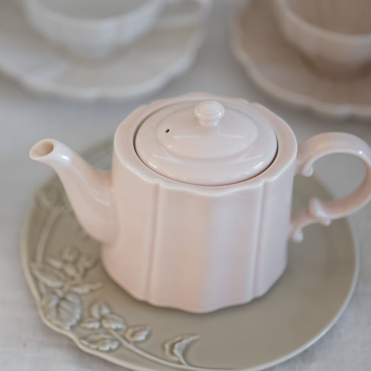 Inspired by British afternoon tea traditions, this pink porcelain teapot blends timeless form with thoughtful detail. Its gently tiered lid and curving, vine-like handle offer a refined silhouette, while the glossy glaze brings depth and richness to the table.