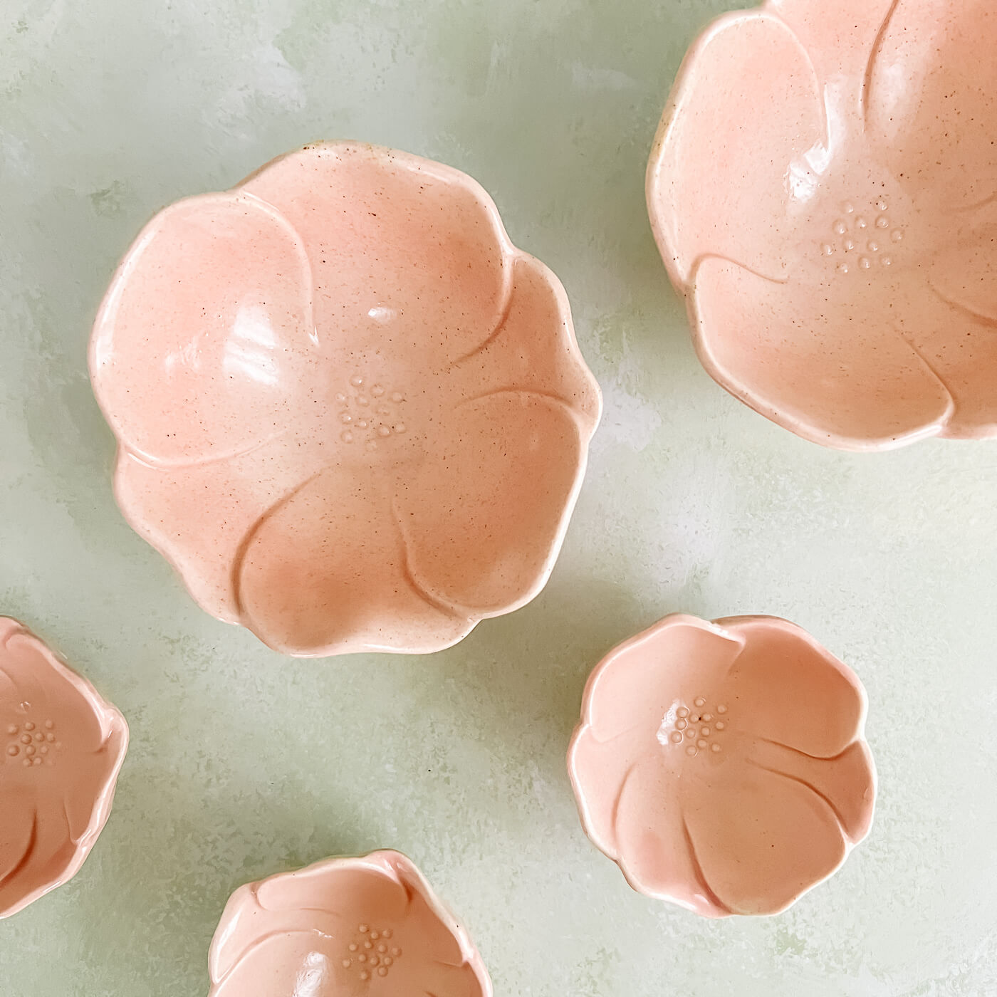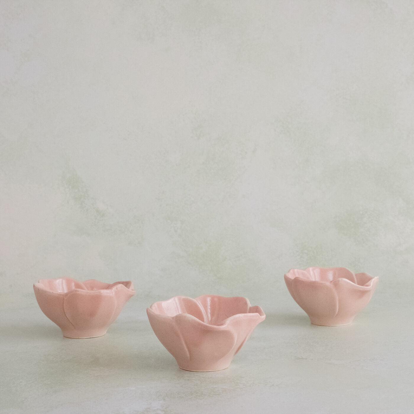 Inspired by the beauty of a Sazanka blossom, also known as a Camellia, the Pink Porcelain Flower Snack Bowls mirror the graceful lines and soft colors of the flowers delicate blooms.