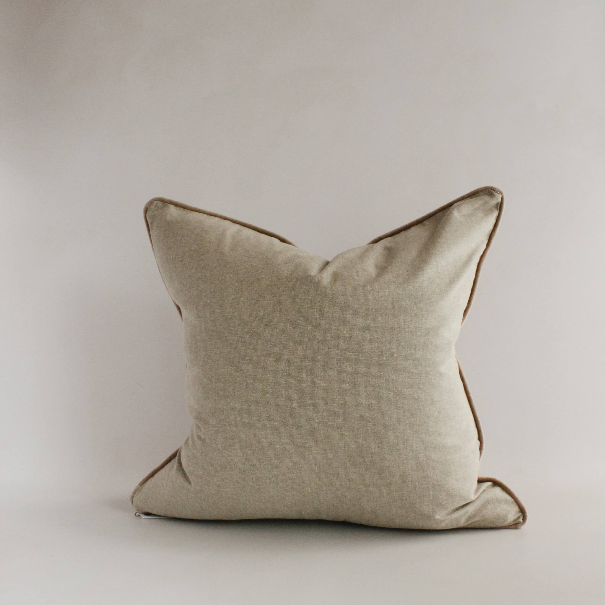 Soft cotton front with matching piping and a natural chambray reverse. Finished with an invisible zipper.