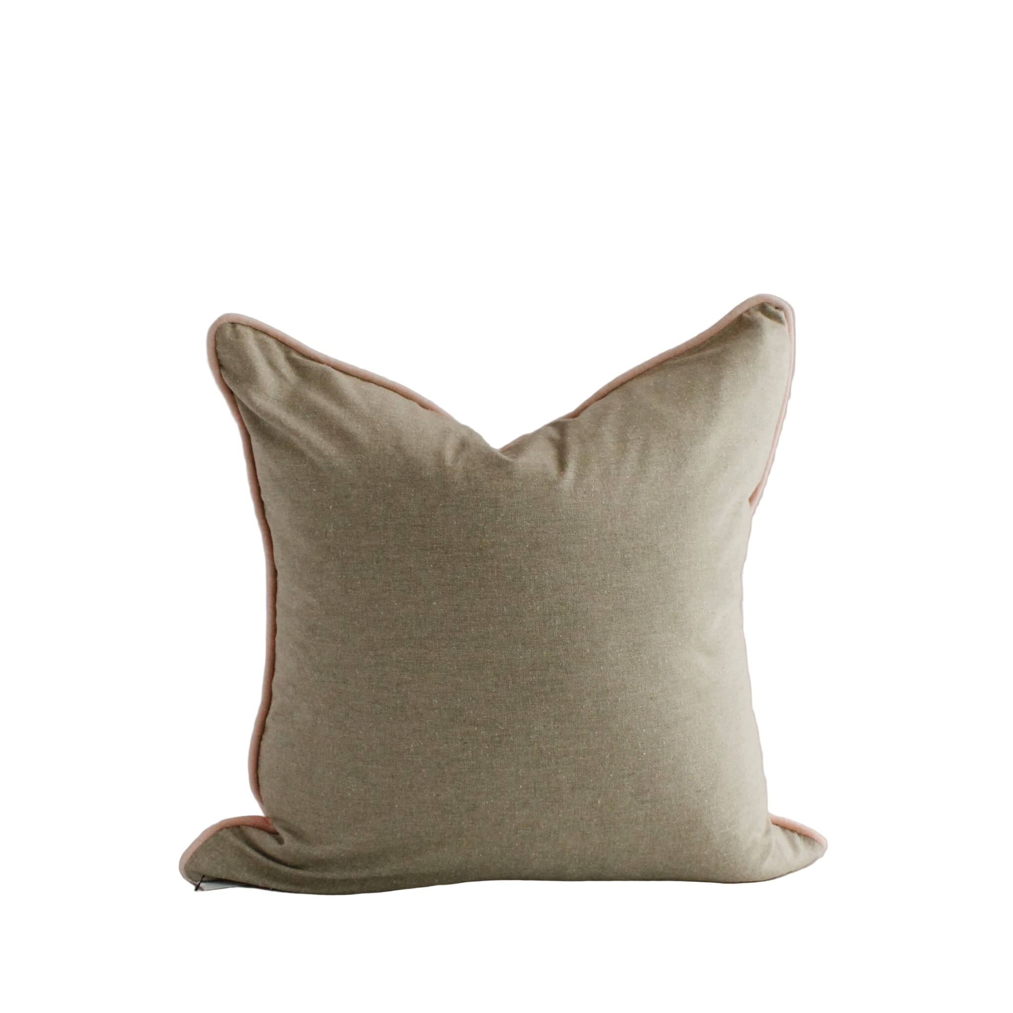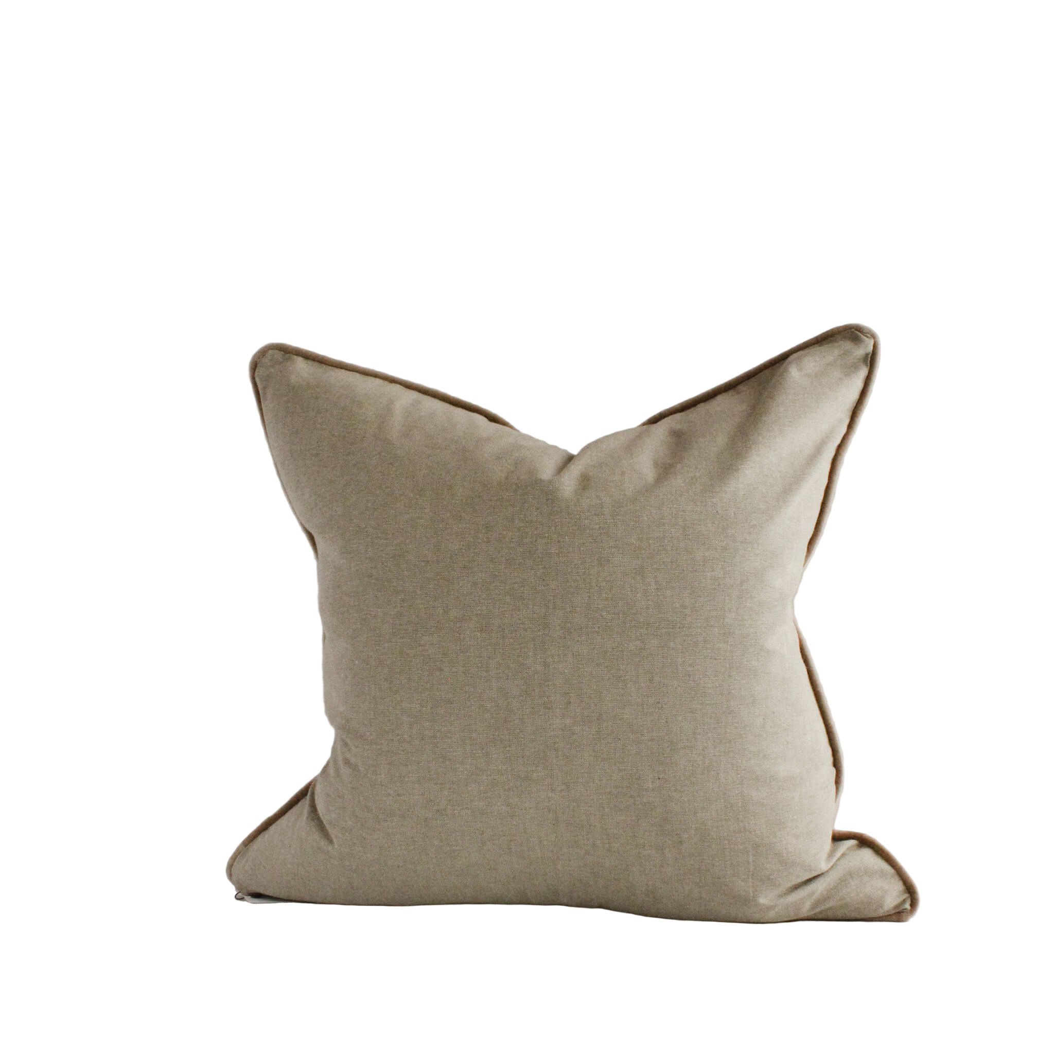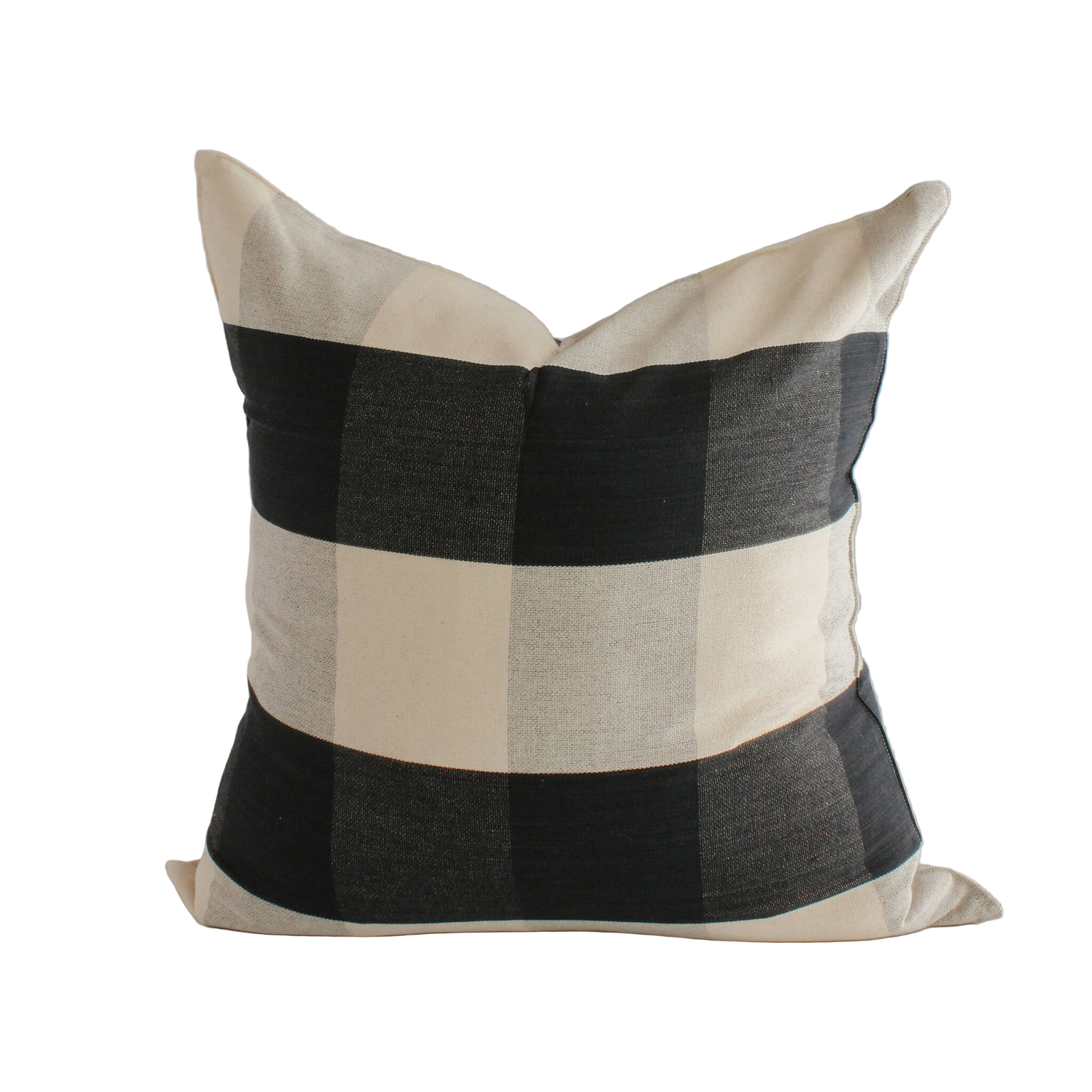20" Greige Gingham Handwoven Cotton Cushion Cover