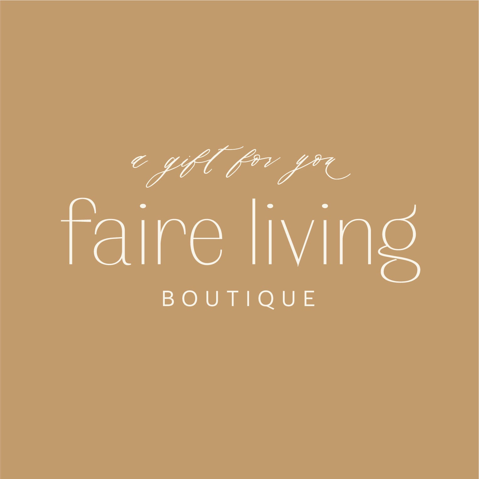 Give the gift of choice with a Faire Living Gift Card—perfect for any occasion. Choose the amount, and they can pick whatever their heart desires, in-store or online.