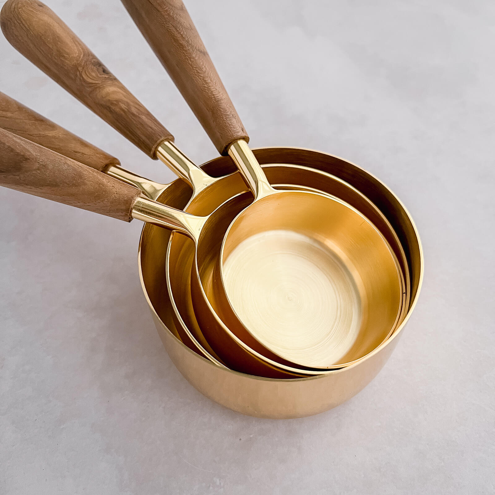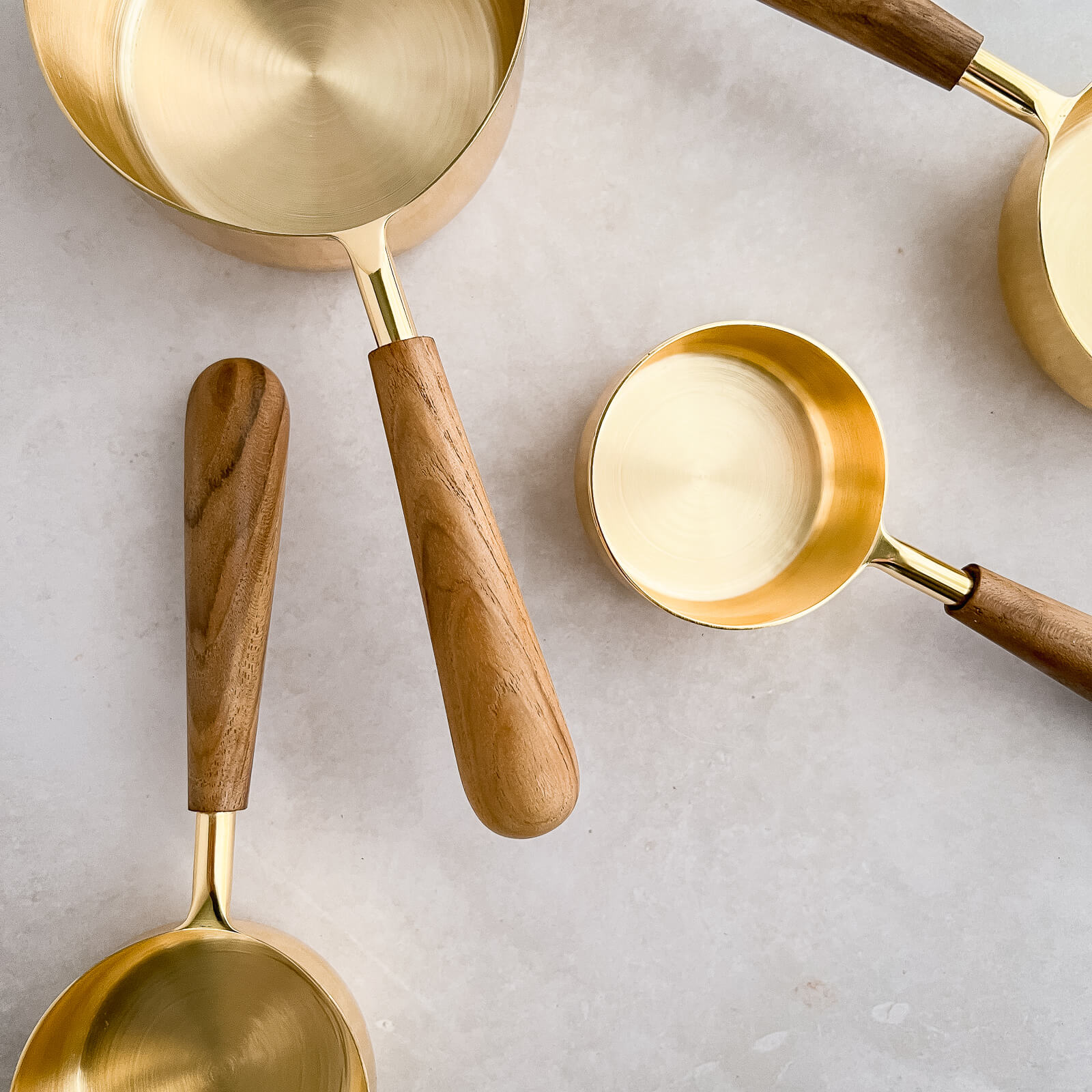 Durable and elegant, these Gold & Wood Measuring Cups are made from responsibly grown teakwood and gold plated stainless steel.