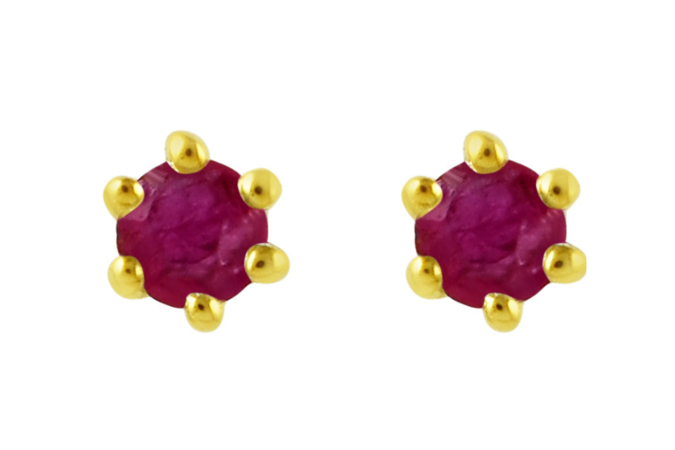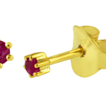 Itsy-bitsy, teeny-weeny colourful gemstone stud earrings. Add an instant splash of colour to your day when you purchase these easy wearing earrings. These gemstone earrings have a claw setting and come in a variety of colours and finishes. View all the gemstones available in our Teeny Gemstone Stud Earring Range. Materials: the earrings are made of gold plated sterling silver and are set with ruby. Details: the earrings have a post and butterfly fixture and the set gemstone is roughly 2 mm in diameter. The gemstone has a six claw setting. Gift as a Mothers day present, a summer treat or a thoughtful birthday gift.